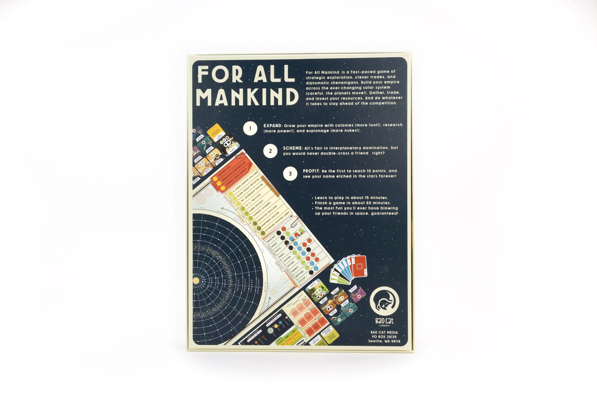 For All Mankind is a fast-paced game of strategic exploration, clever trades, and diplomatic shenanigans.